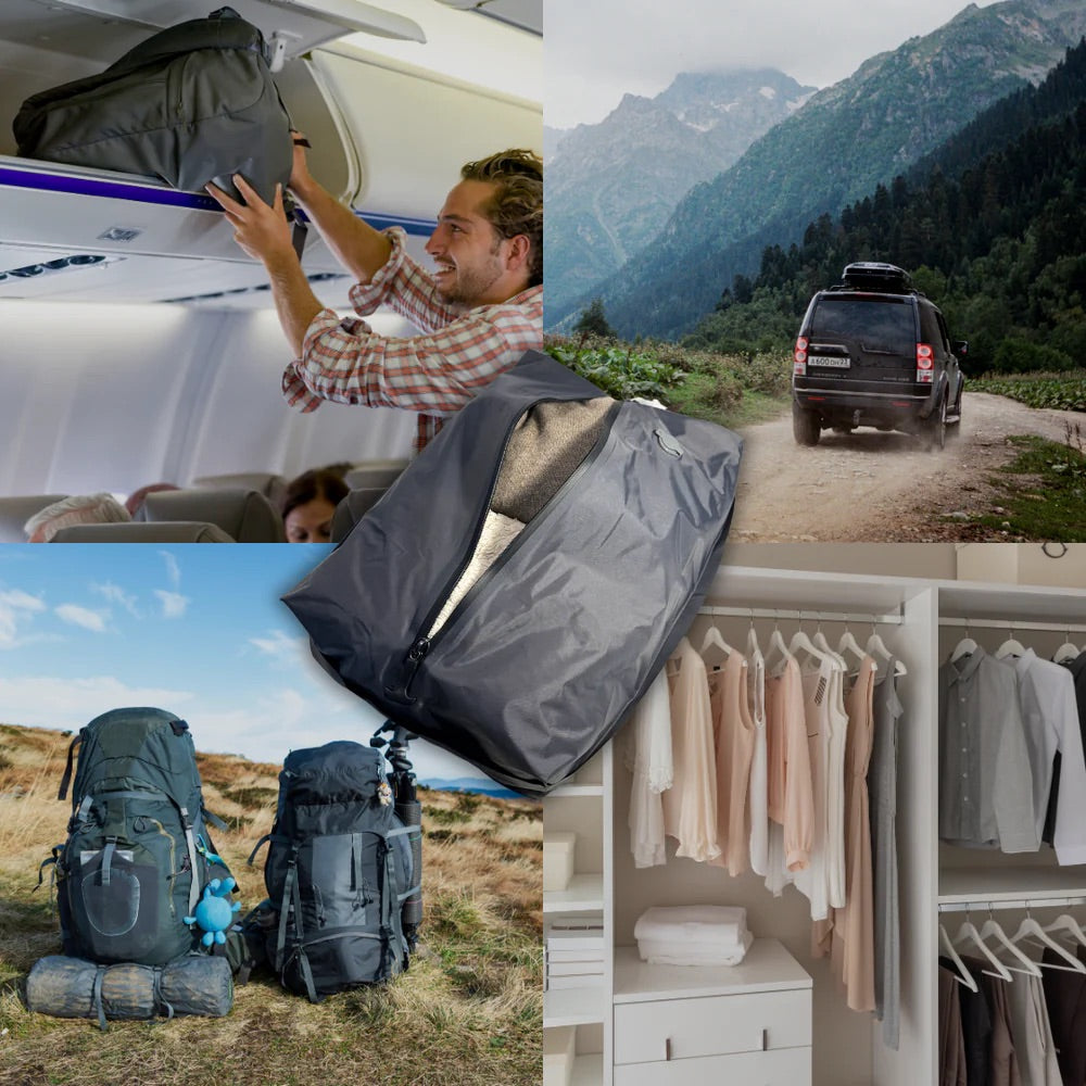 Our luggage compressor bags remove excess air and compress your clothes, more than doubling your carry-on space. Pack everything you need without checked bags, extra fees, or baggage claim waits.